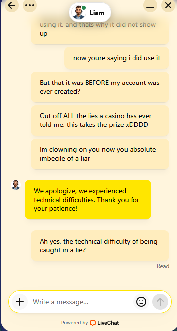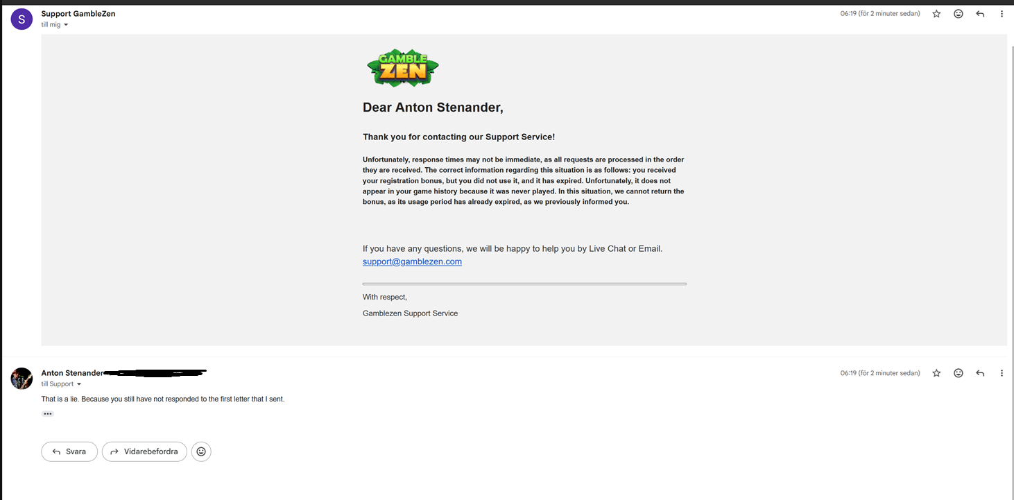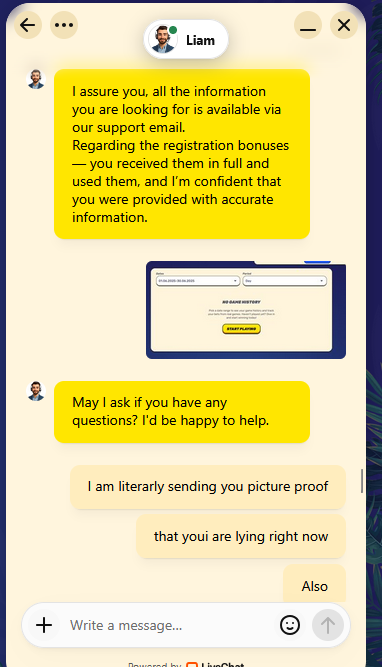 I showed him the screenshot of my welcome email, verifying the date to be the ones in my screenshot, explaining, that would be impossible, because I cant have claimed the bonus before creating my account. He proceeded to lie and say "The screenshot is not of those dates."