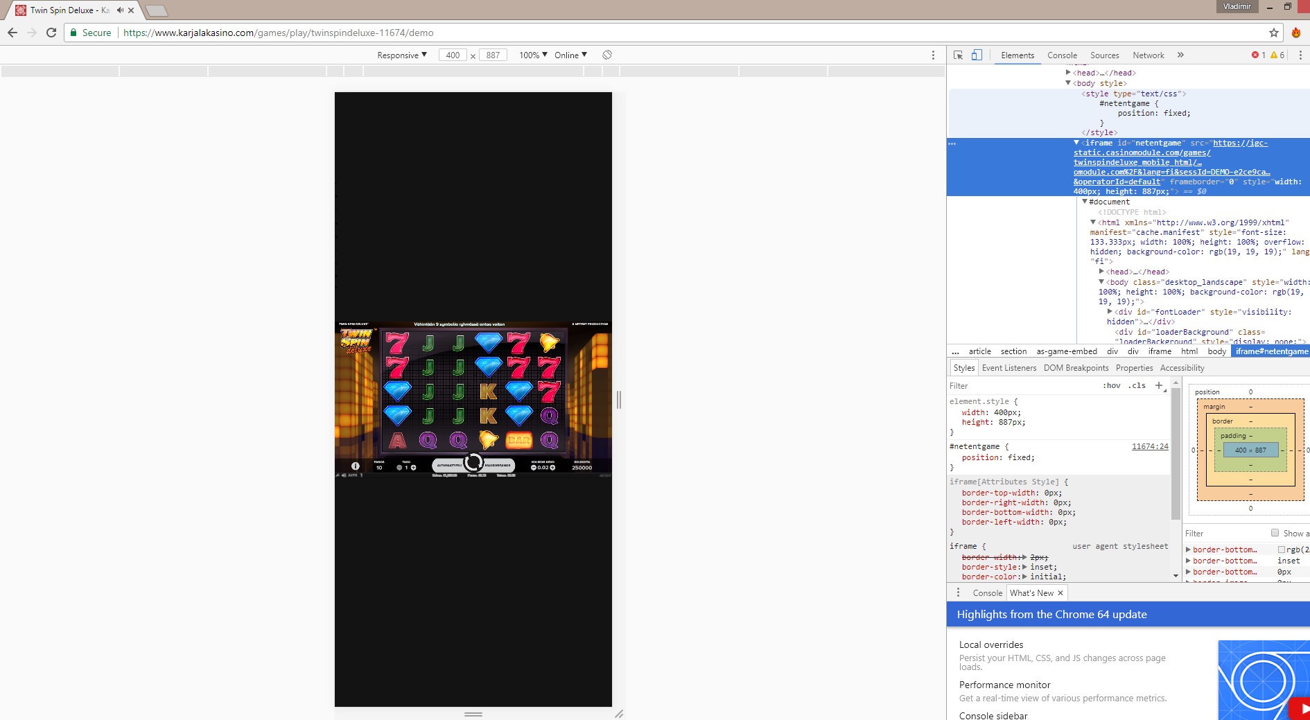 I registrier me at the casino site and receive the no deposit bonus 100 freespins at fire joker i was open the game and the game load not from playngo Server i try it with twinspin deluxe too and u can see at my Screenshot too that the download Server is not from netent please look forward and doesnt make something at the casino because u can lose your money when it is true. I hope that lcb or other Pages controll the casino site.