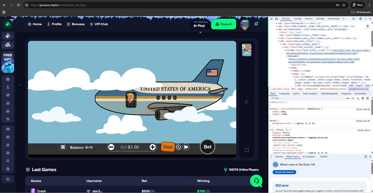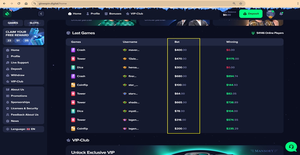 Glowspin.digital operates without a valid gambling license, features fake game providers, and misleads players with false regulatory claims. Depositing money on this platform carries a high financial risk. Players are strongly advised to avoid this casino.