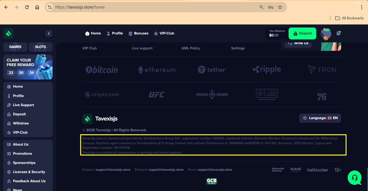 ➡️ Conclusione: non ci sono prove sufficienti a sostegno dell'affermazione che il programma di affiliazione Tavexisjs sia un partecipante autentico o affermato nel mercato dei casinò crittografici o degli affiliati iGaming.