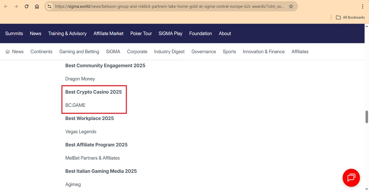 - According to the official results of the SiGMA Awards 2025, the Best Crypto Casino 2025 award was actually won by BC.GAME.