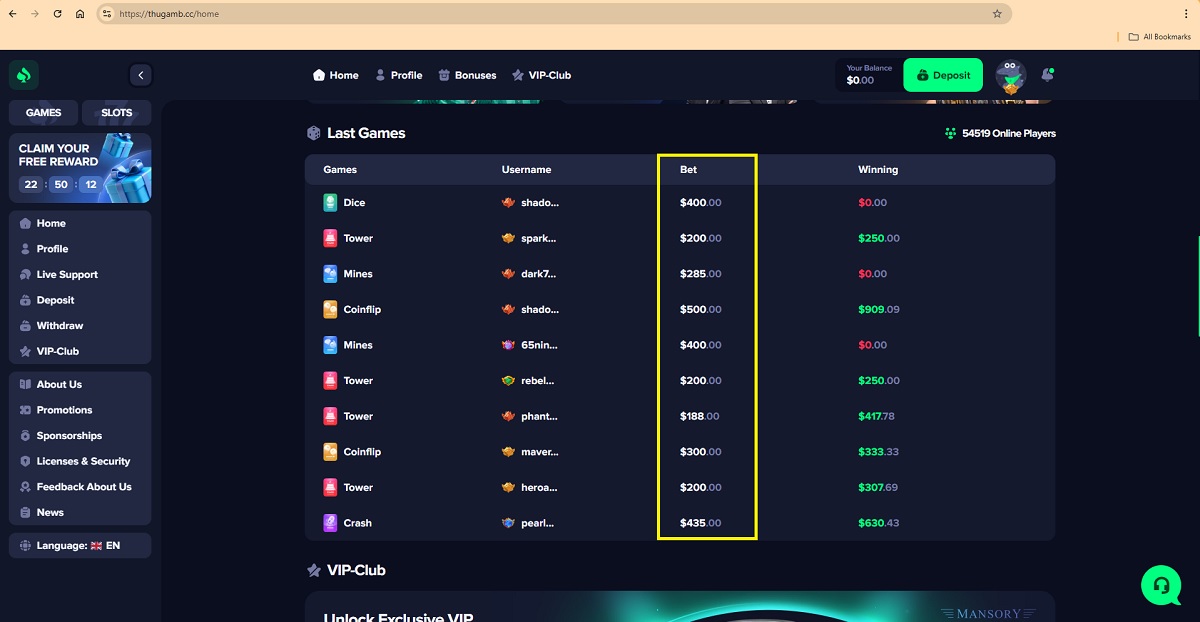 Il design complessivo del sito web Thugamb.cc , insieme al contenuto di tutte le sue pagine, corrisponde agli schemi di truffa ben noti al team LCB. Si tratta praticamente dello stesso schema di truffa, solo su un dominio diverso e nuovo.