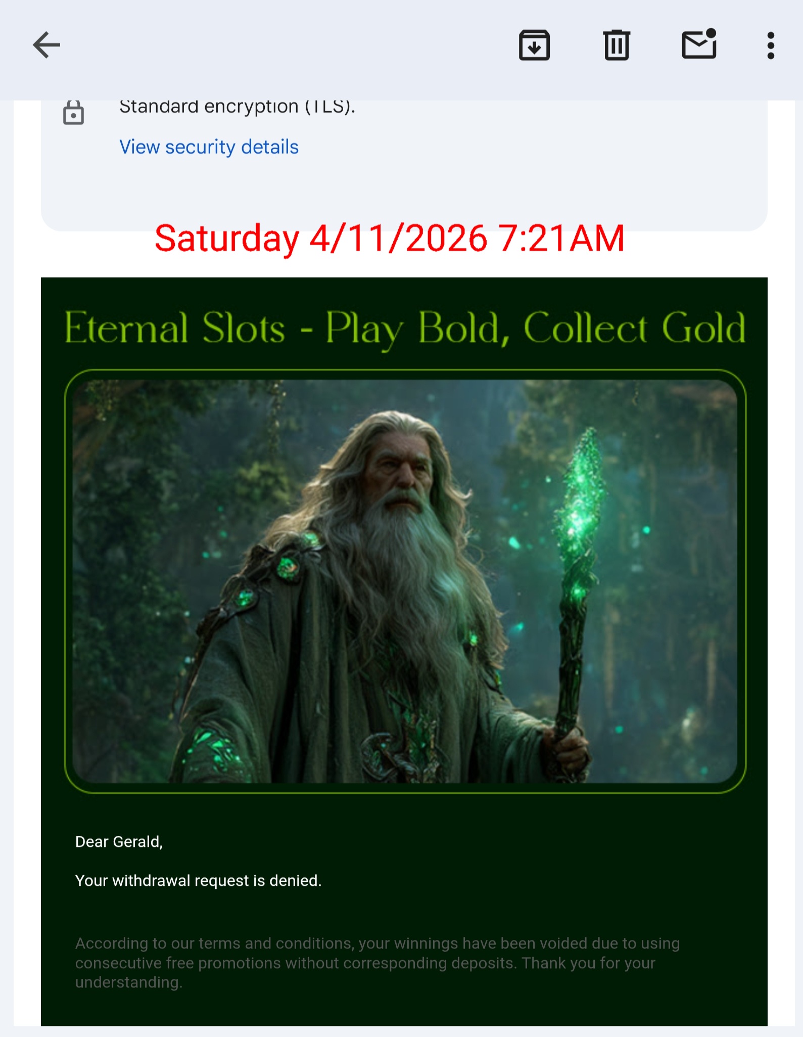 Oggetto: Riepilogo dell'attività dell'account e della contestazione – Eternal Slots