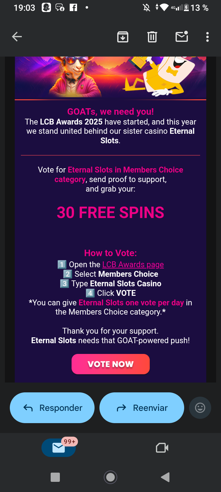 Hi, waiting for the 30 free spins bonus for betting in the eternal slots category 🙋🏻♂️