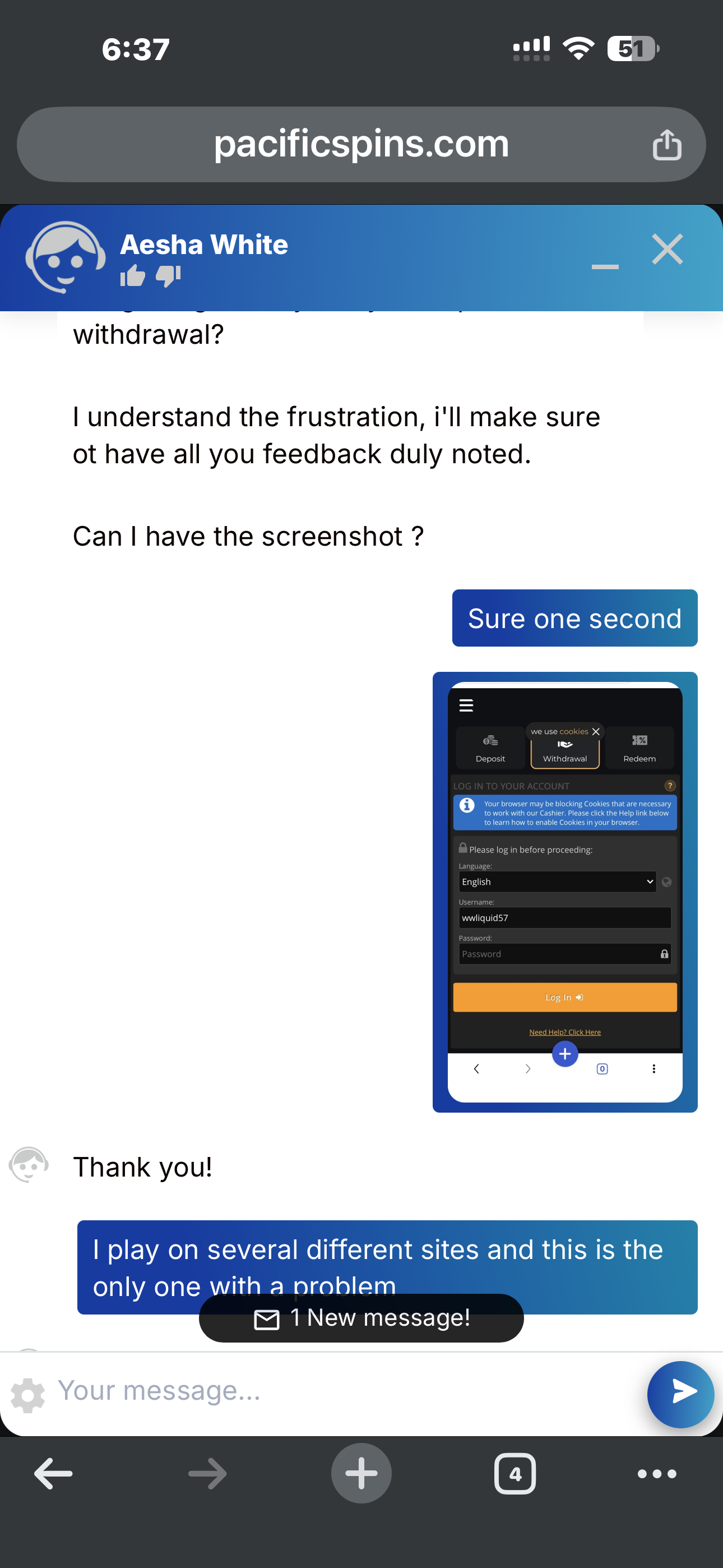 In addition, I attempted to resolve the matter directly with the casino prior to filing the complaint. I sent emails to both payments and support without receiving any response. When I finally reached live chat, the representative offered a $20 free chip for the inconvenience, but this was never issued.