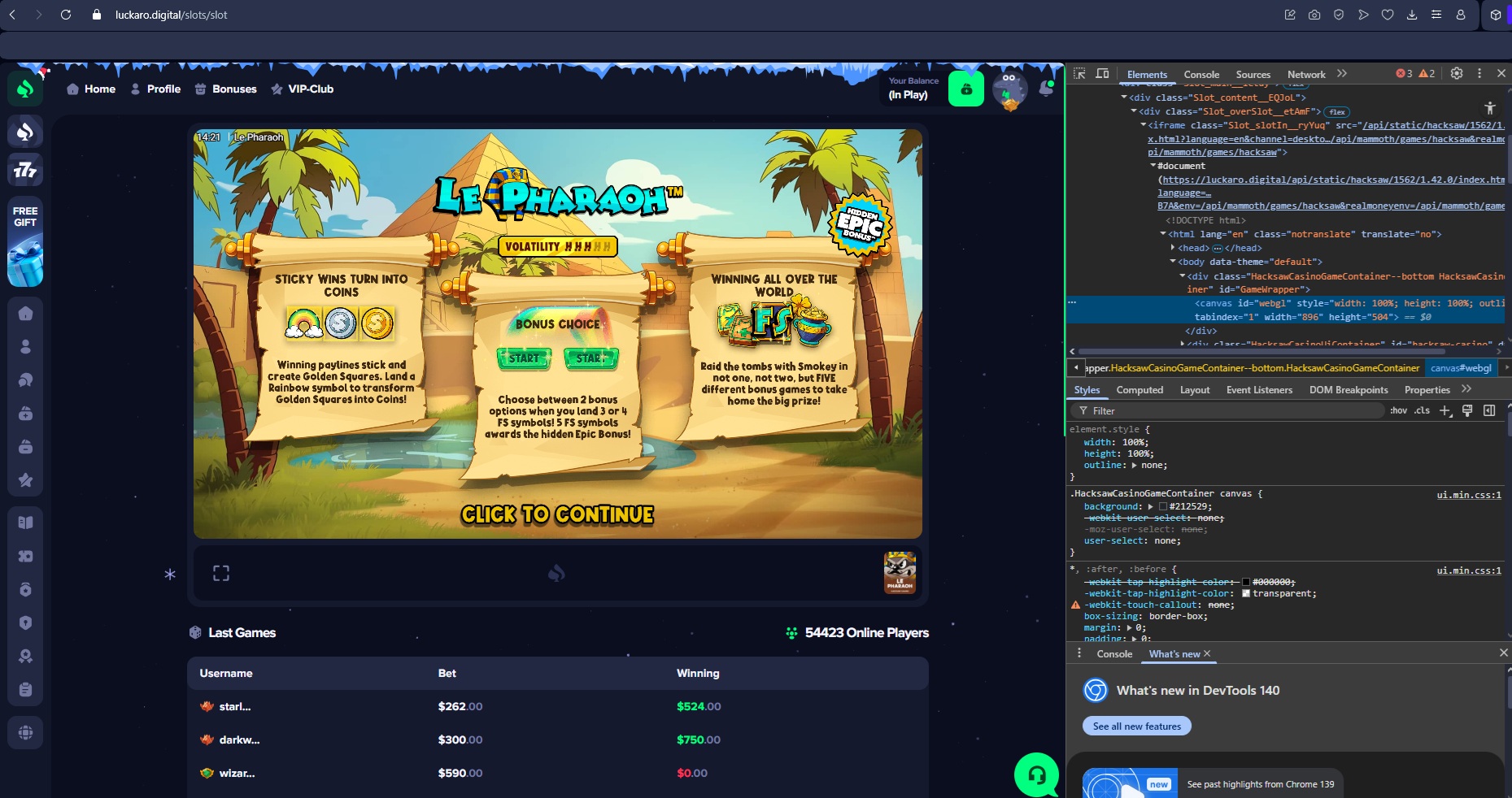 Our investigation revealed that this casino offers fake Pragmatic Play, Hacksaw Gaming, BGAMING, Evoplay, and 1win.