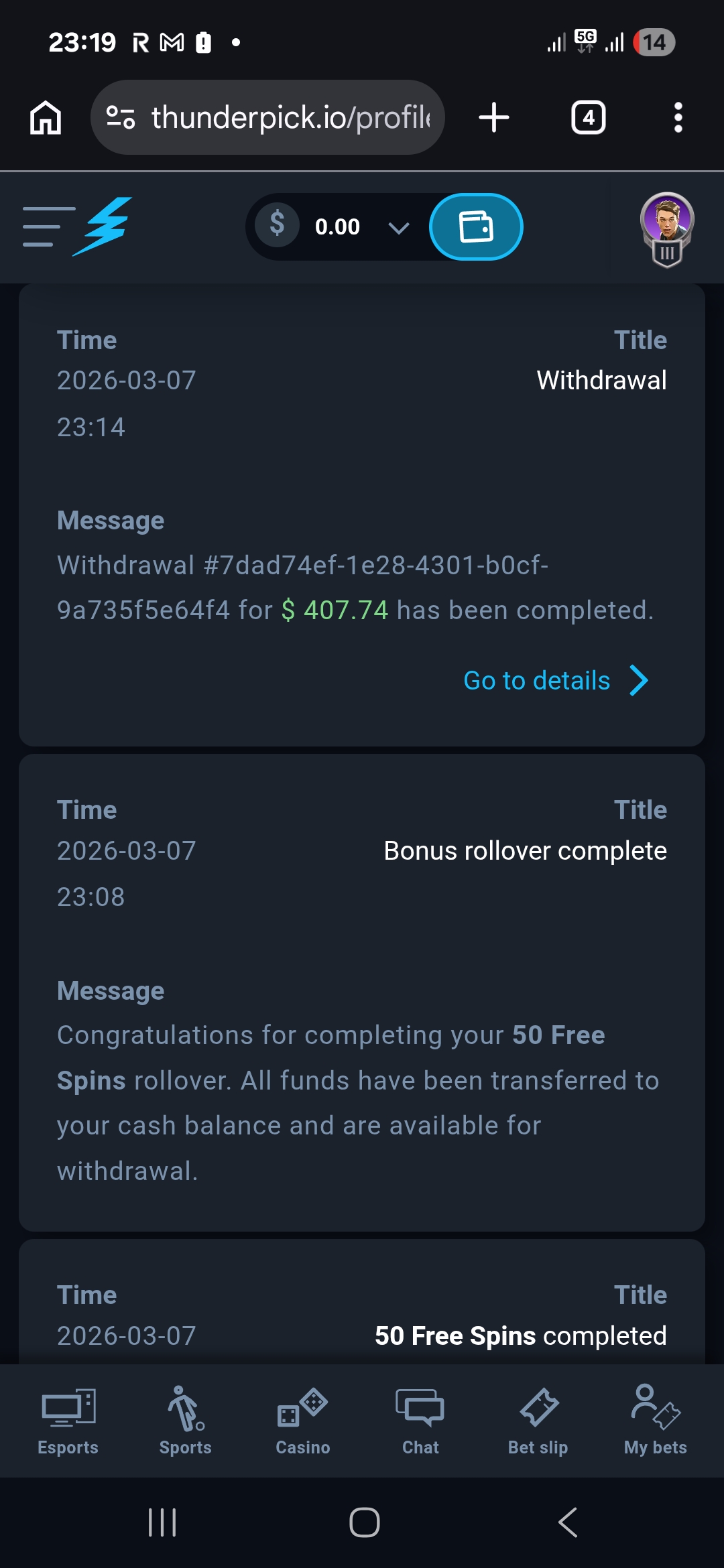 Cashed out over 400$ from the 50 fs freebie