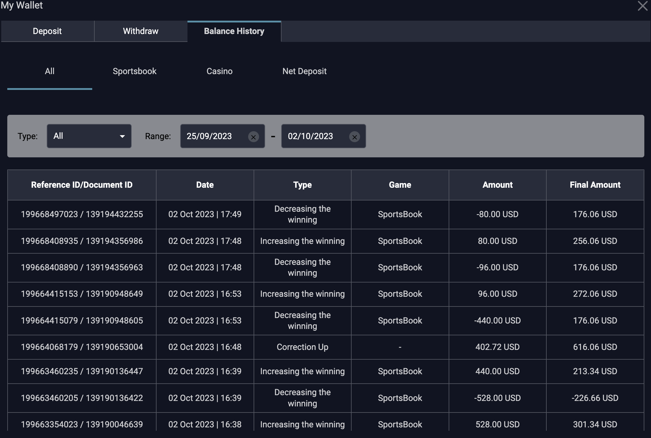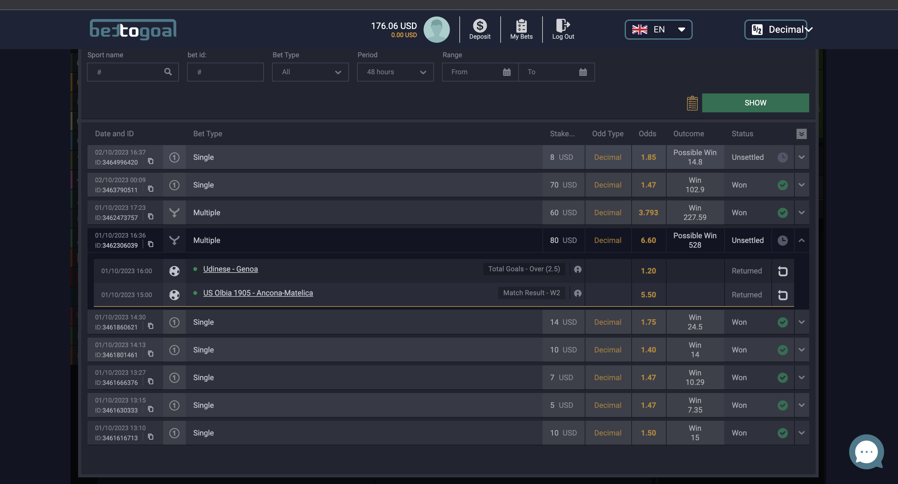 How my balance can be 176 USD and how they calculate this, I really dont know. This is fantastic! They can cancell any bets they want and still money from your account.