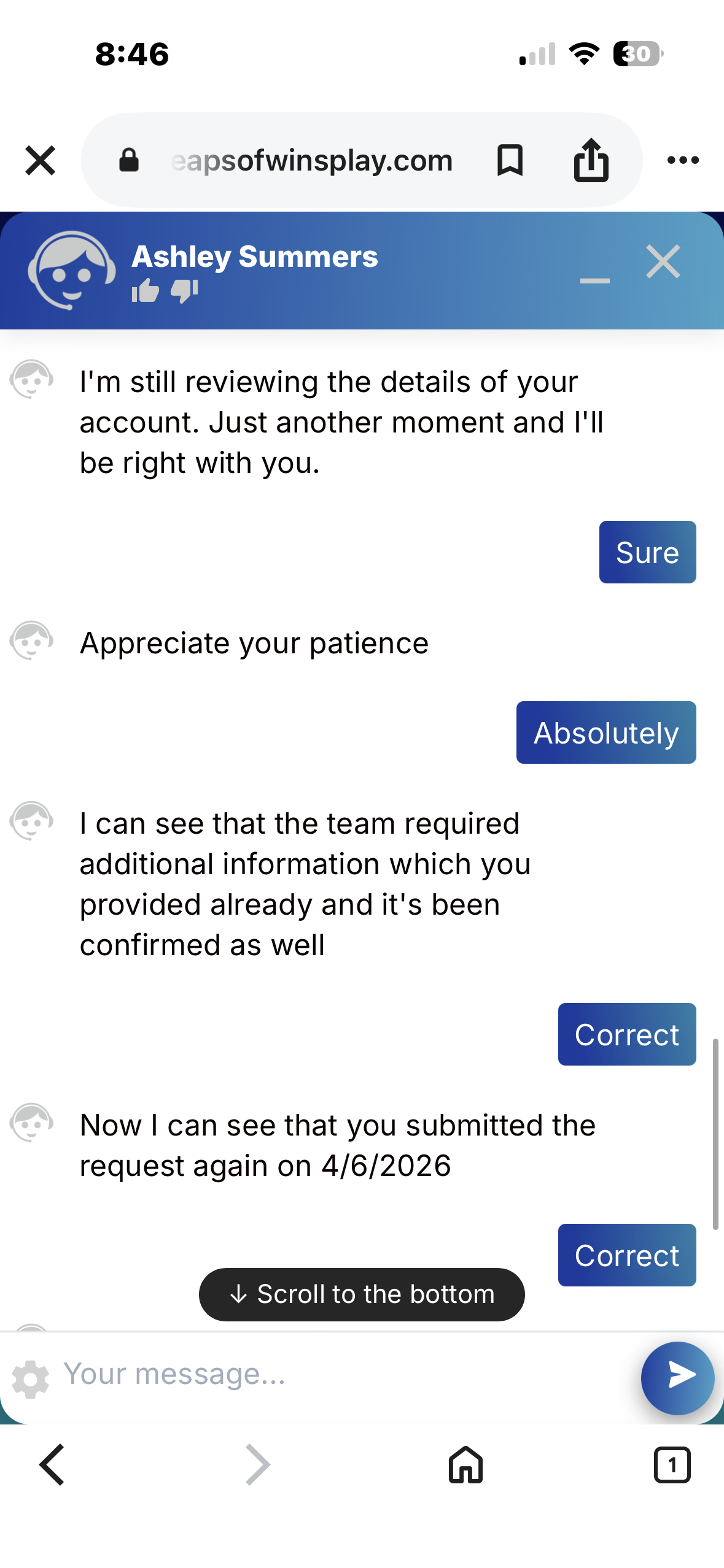 Once we have all of this information, we will escalate your case to the casino and try to assist further.